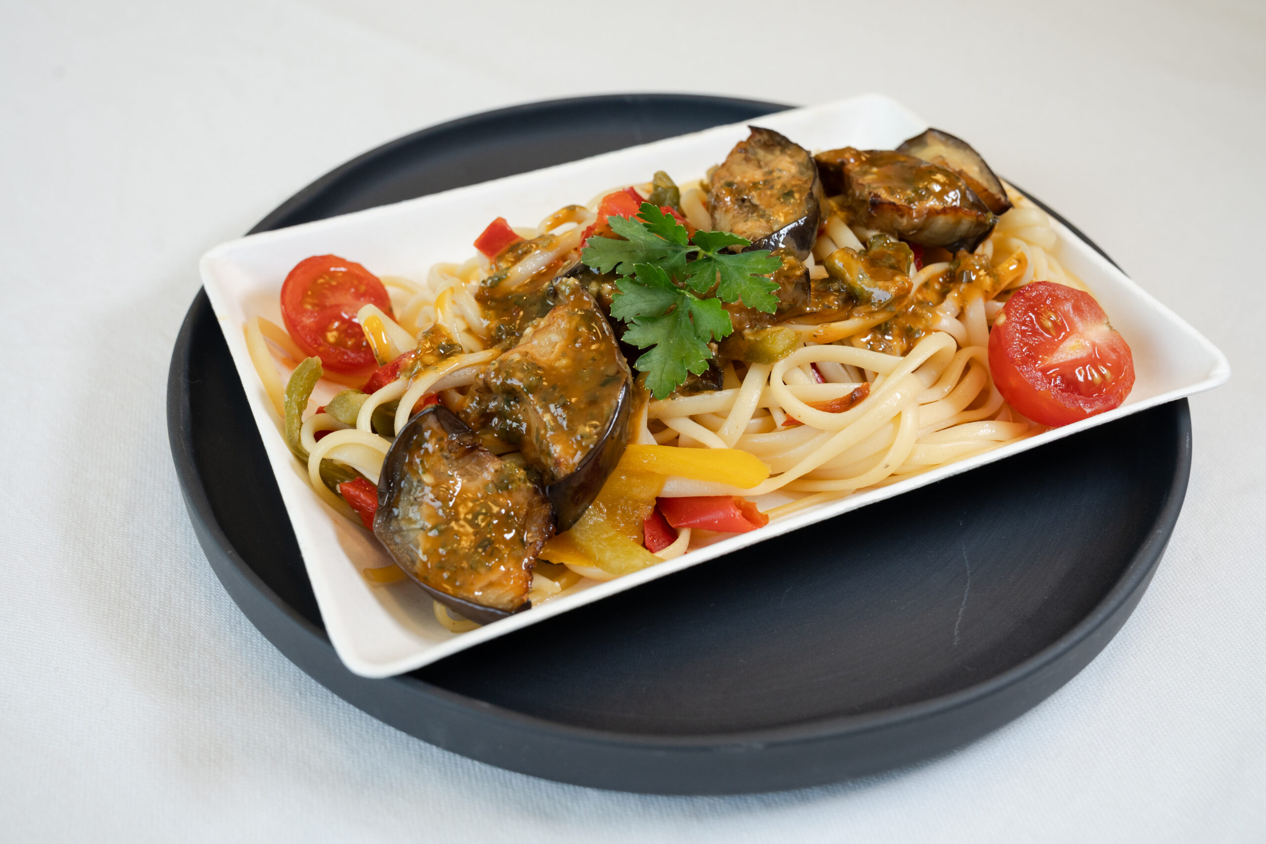 - Linguine aux 3 poivrons et aubergines grillées